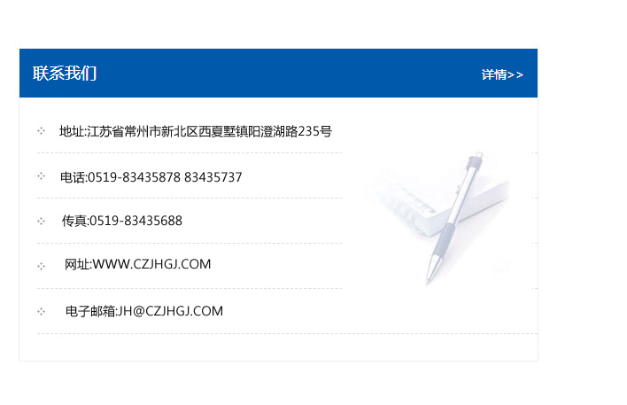 傳真:0519-83435688    郵編:213135    網址:WWW.czjhgj_com.dfclwzycw.com    電子郵箱:JH@czjhgj_com.dfclwzycw.com